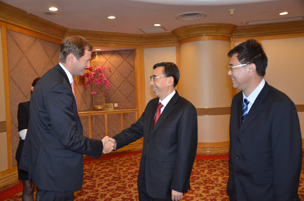 12日,全球药业巨擘诺华山德士高层来粤拜会我省主要领导。中共中央政治局委员、省委书记胡春华,省长朱小丹,市委书记、市人大常委会主任薛晓峰,市委副书记、市长陈良贤等在广州热情接待诺华集团管委会常务执委、山德士公司全球首席执行官乔杰夫一行,双方表达了进一步助推山德士中山工厂做大做强的共识。