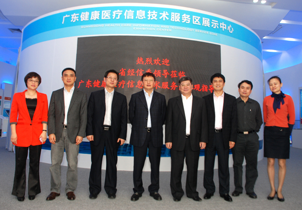 3月30日,广东省经信委杨建初主任、蔡勇副主任在中山市副市长冯煜荣的陪同下,来到广东健康医疗信息技术服务区参观。中山市经信局局长雷岳龙、中山市火炬开发区总经济师林伟强、国家健康基地总经理方迎、副总经理林霞陪同参观。