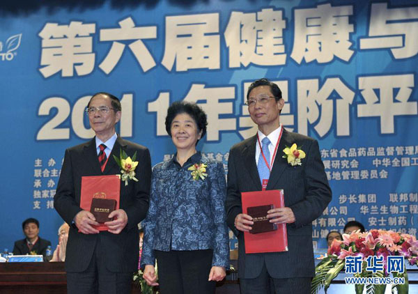 11月19日,钟南山院士(右)、韩济生院士(左)获得2011年吴阶平医学奖。