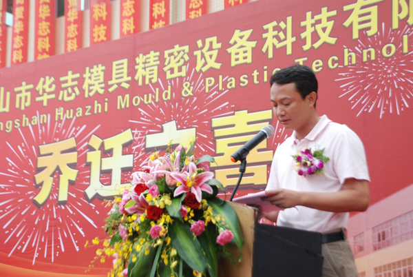 本网讯.7月19号,华志模具精密设备科技有限公司成功举行了乔迁典礼。区领导梁欣调研员、欧阳锦全副主任、工商局潘璞副局长、经贸办洪钟海副主任、国家健康基地梁兆华总监、方迎总经理、林霞副总经理、吴琰光副总经理、王尚健副总经理、胡韬总经理助理出席了此次典礼。